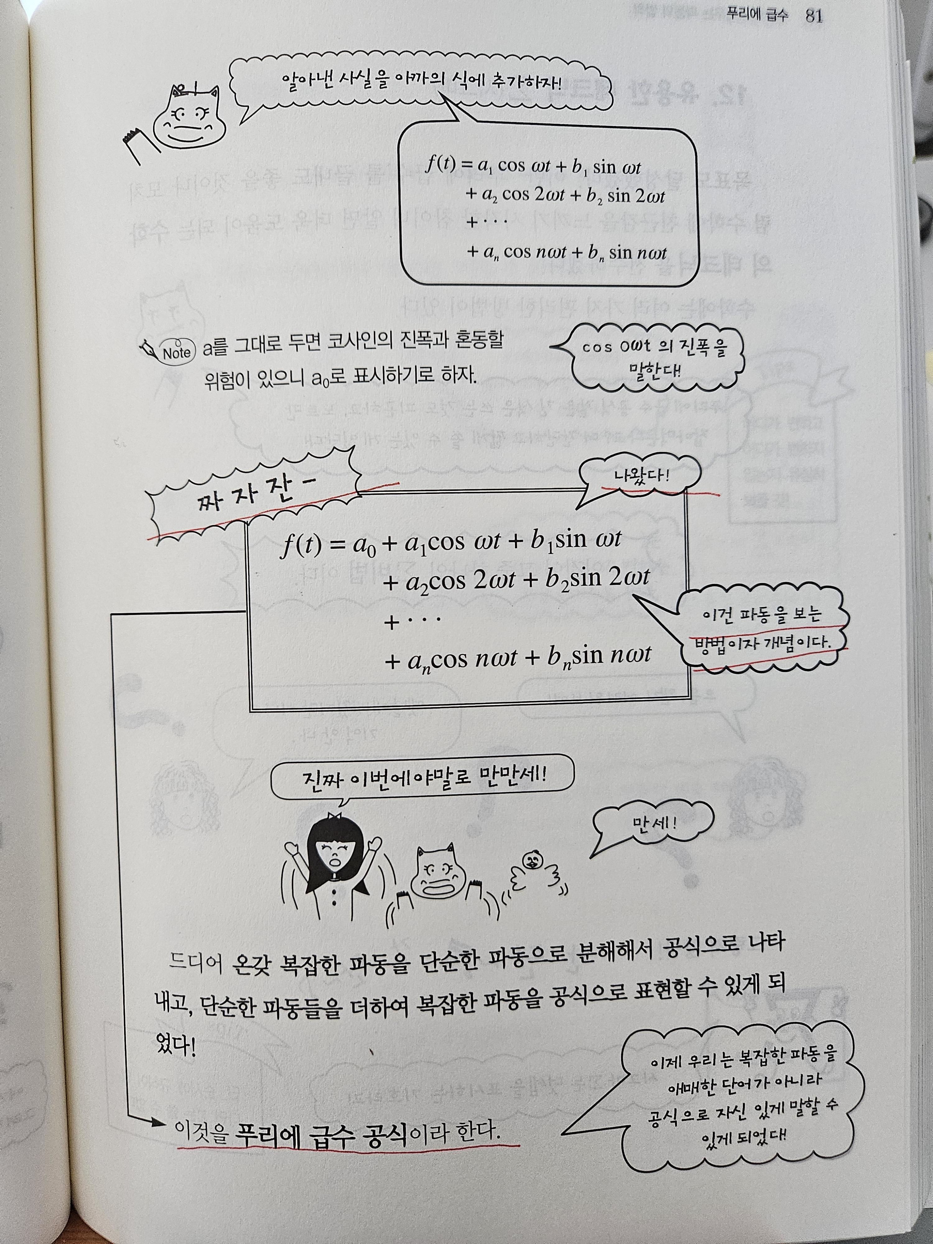 독서를 통해 푸리에 급수가 무엇인지, 푸리에 변환이 무엇인지 흡족하게 배웠다. 그 과정에서 미분과 적분도 충분히 연습했다. 대학 전공 공부 전에 이 책을 봤다면 공업수학 빵구는 면했을 것이다. 아쉽다.