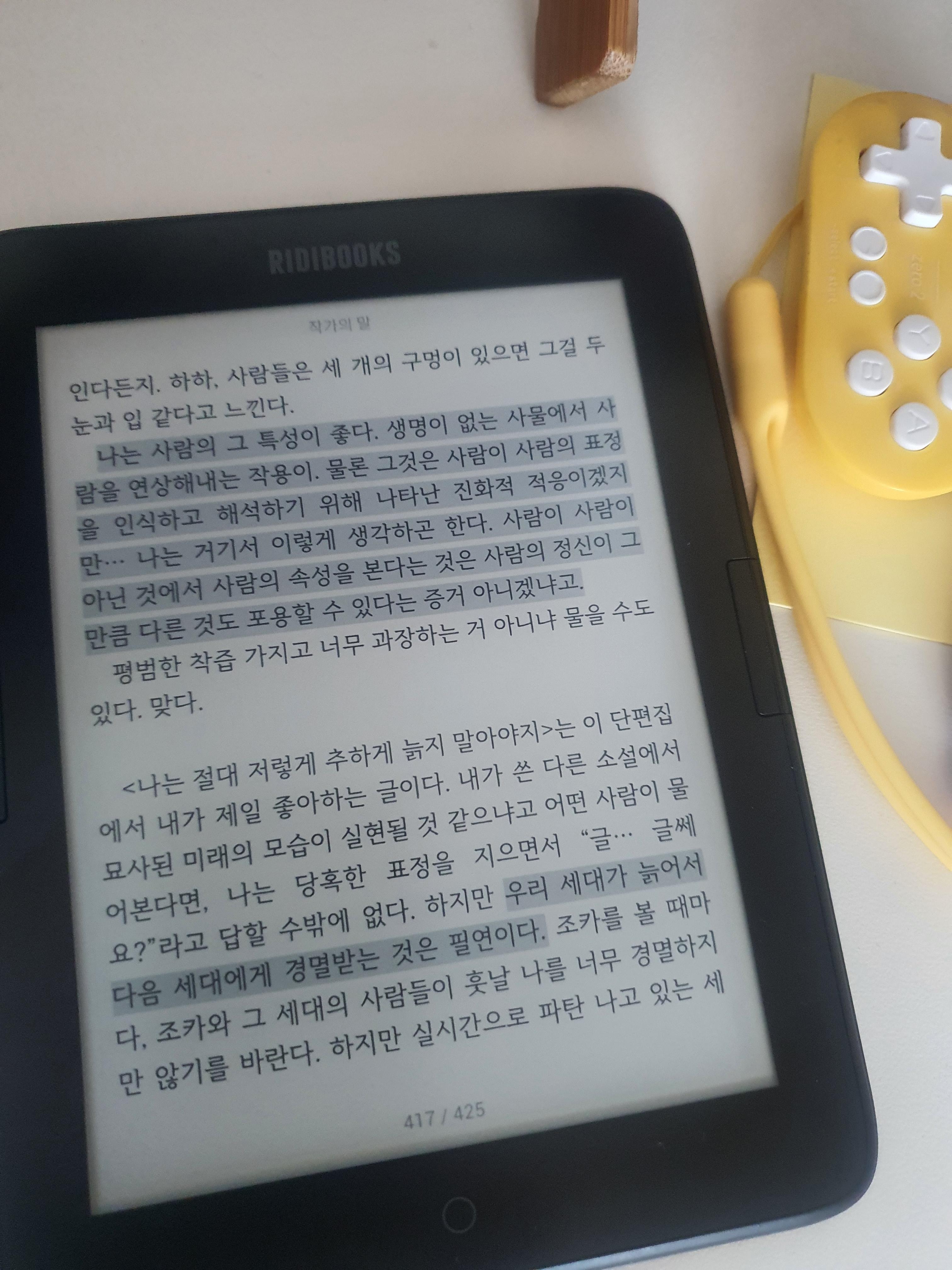 제목을 보고 나이듬에 대한 성찰을 담은 책인 줄 알았다. 읽고 보니 통통 튀는 표현의 SF 코미디 모음집이었다. 설정이나 묘사가 치밀하진 않지만 재밌는 아이디어를 정말 재밌게 풀어낸다. 단편 하나하나마다 웃음 포인트 하나는 꼭 있다. "작가의 말"도 작품 본편만큼이나 재밌다.