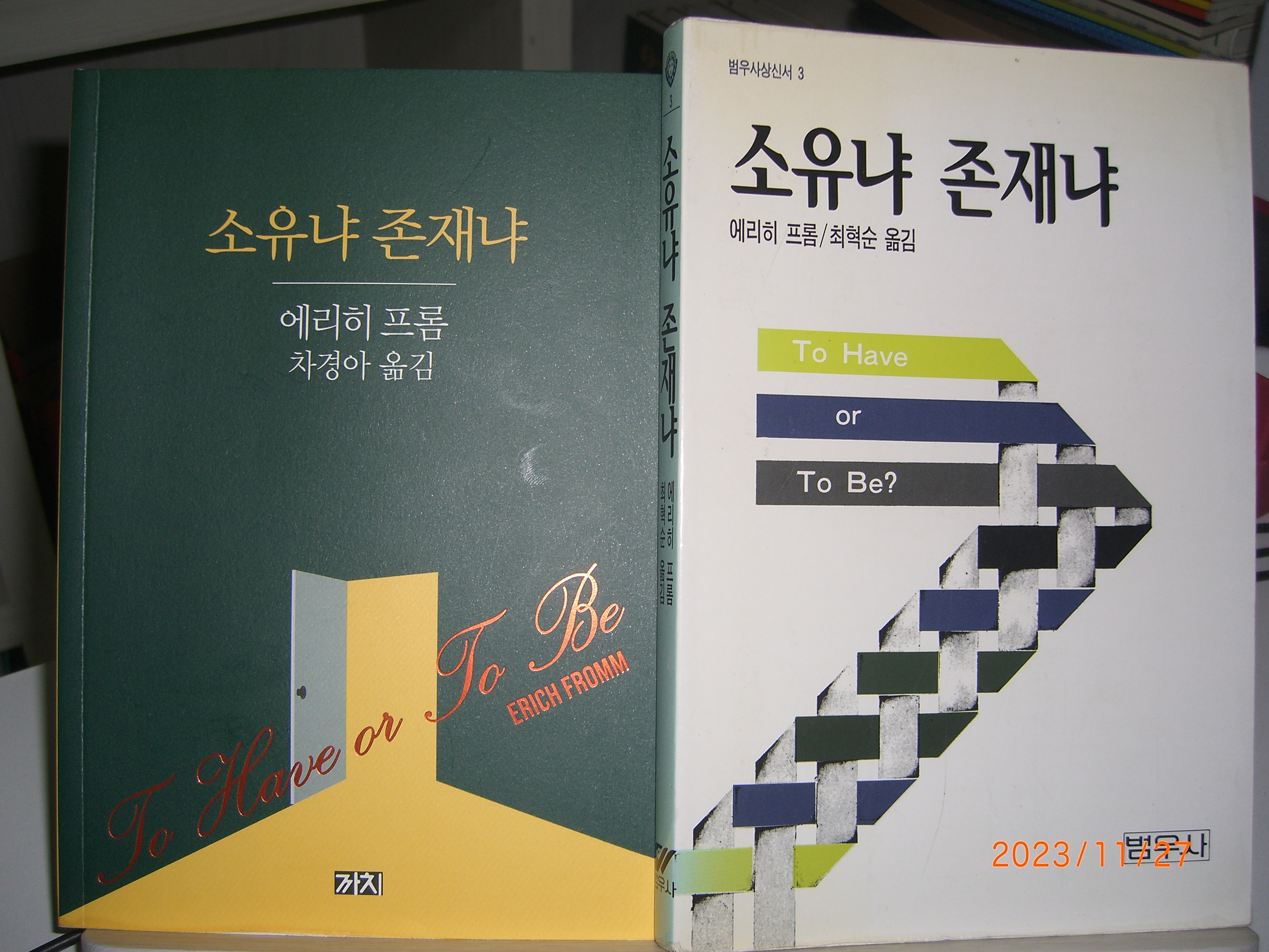 범우사에서 출간된 번역서를 몇 년 동안 표지가 너덜너덜해지도록 읽었다. 원서 제목은 "To Have or To Be". 얇고 가격도 싼, 바람직한 책이다. 번역은 무난하다. 초반 번역은 감동스러울 정도로 충실한데, 마지막 장 부근의 번역이 다소 불만스럽다. 그래도 그정도면 훌륭하다. 인생 사는 법을 배울 수 있었다.